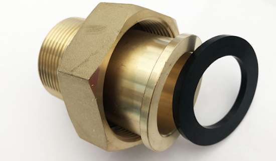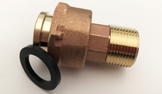 Standard residential water meters require meter couplings. The threads on the end of the meter are non-tapered mechanical threads and compress a rubber gasket making a drip-tight seal. Each coupling comes with a 1/8" rubber washer. These couplings are certified “Lead-Free” and made to fit any 5/8" to 2" water meter, regardless of the manufacturer.